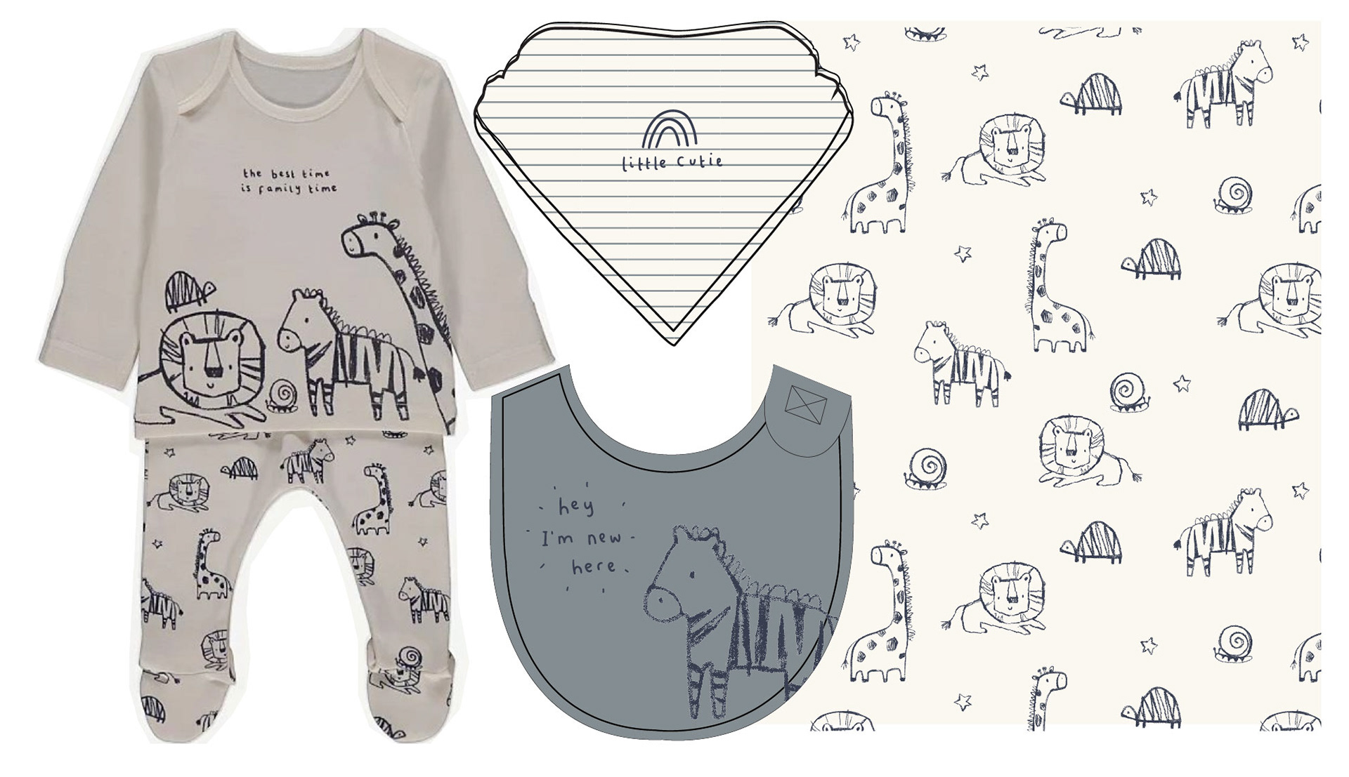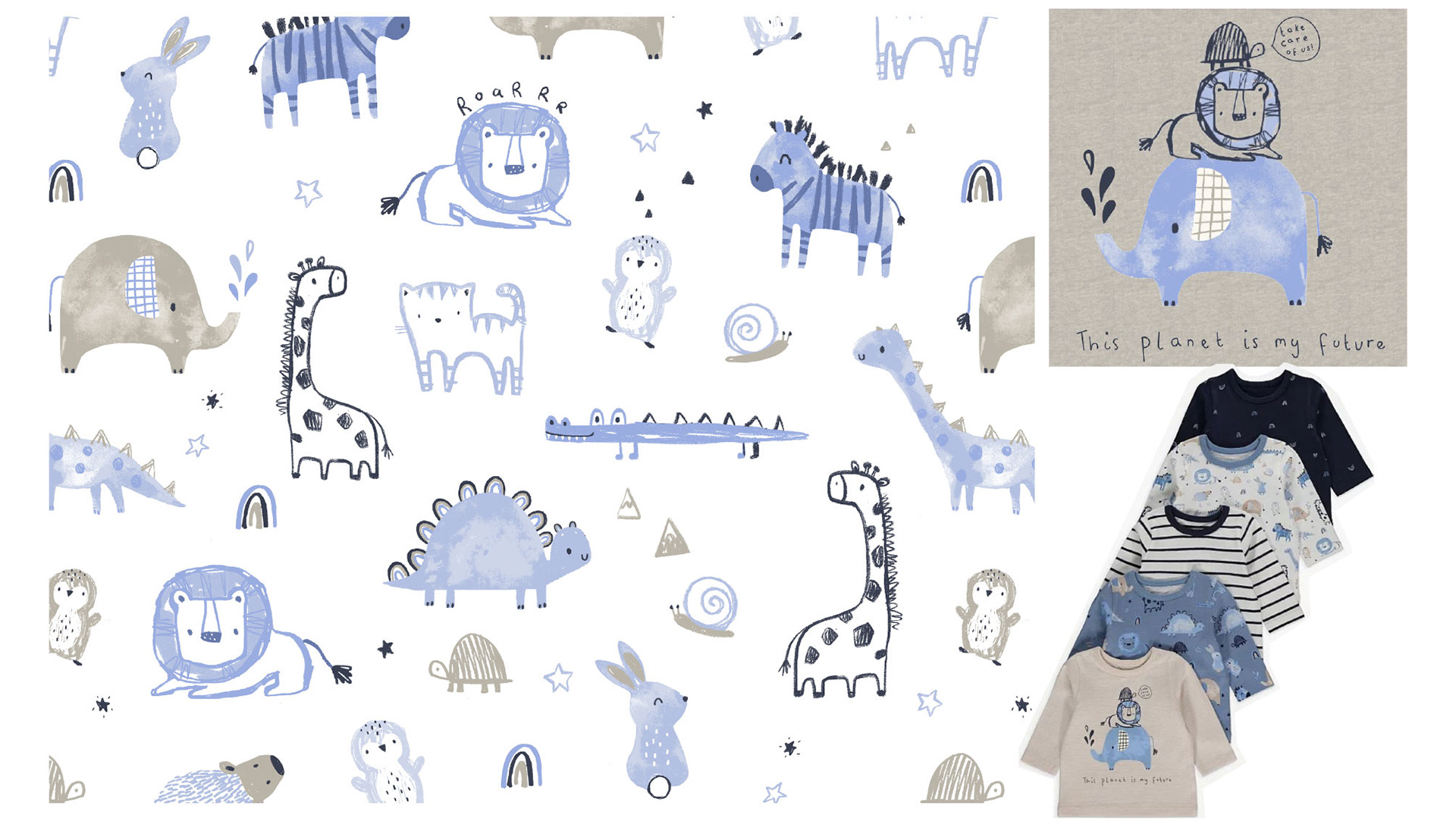 Newborn Boys - Soft inky blues palette - hand painted characters