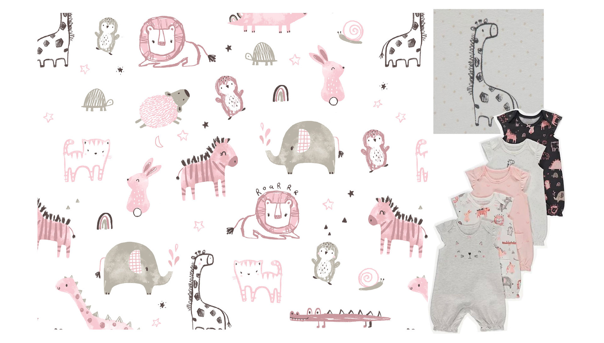 Baby Girls collection - New born - hand painted animals - simple mark making prints